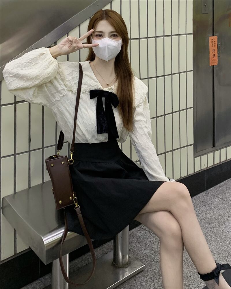 リボンシャツ オータムカラーショートトップス ロング 大人ガーリー スウィート キュート カジュアル 秋物 10/5 秋冬 オータム ウインター ナチュラル mi4698883057589