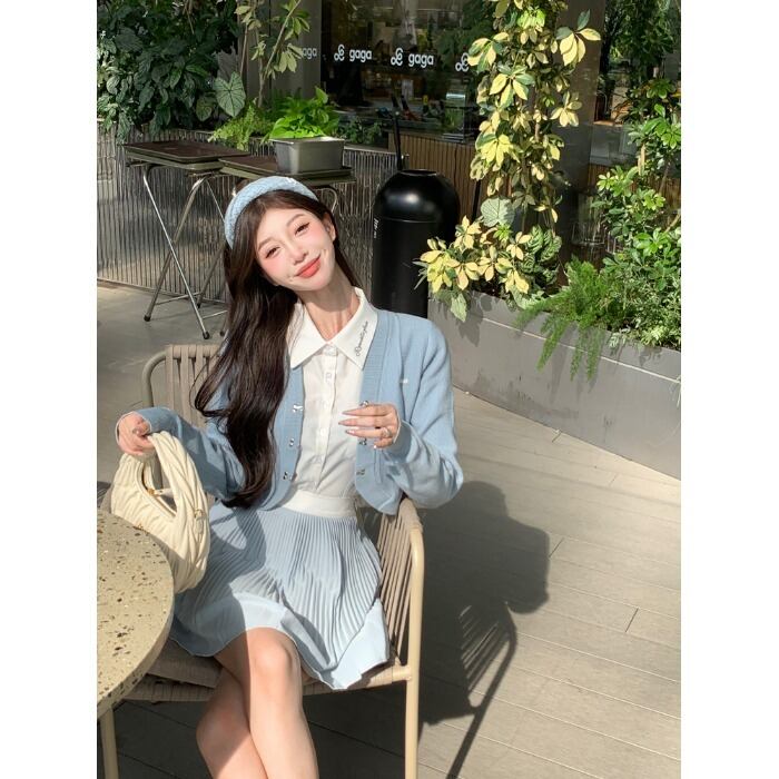 色:ピンクスカートワンピース,青いスカートワンピース,白いシャツのワンピース,ピンクカーディガンワンピース,ブルーカーディガンワンピース