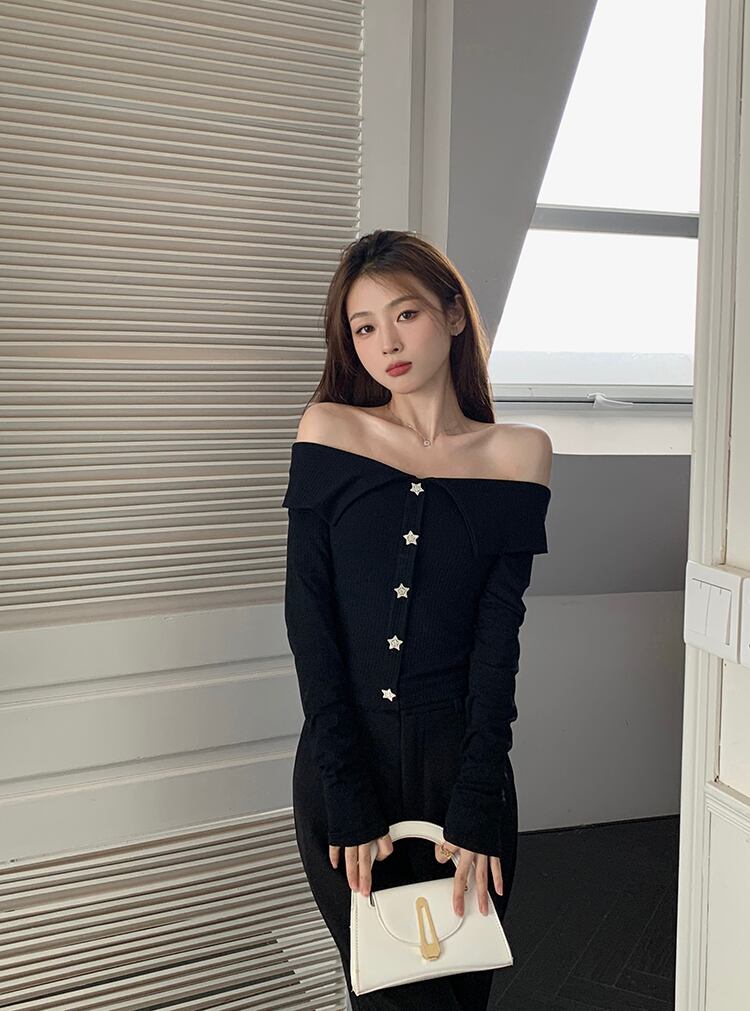 スタイルニットTシャツ オータムショートスリムトップス ロング 秋物 10/5 秋冬 オータム ウインター ナチュラル mi4657137102015