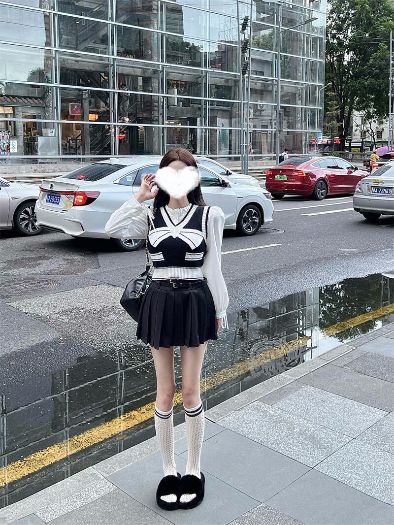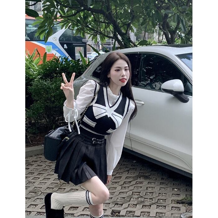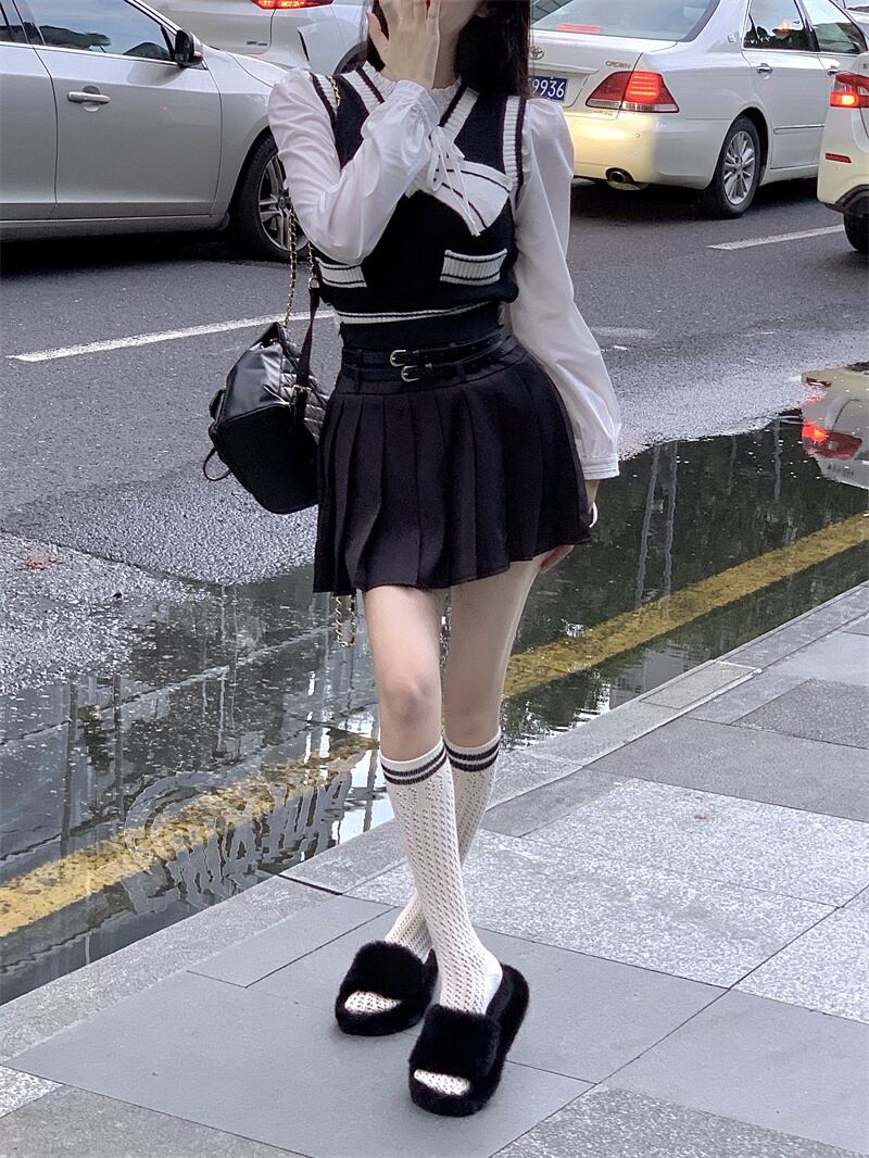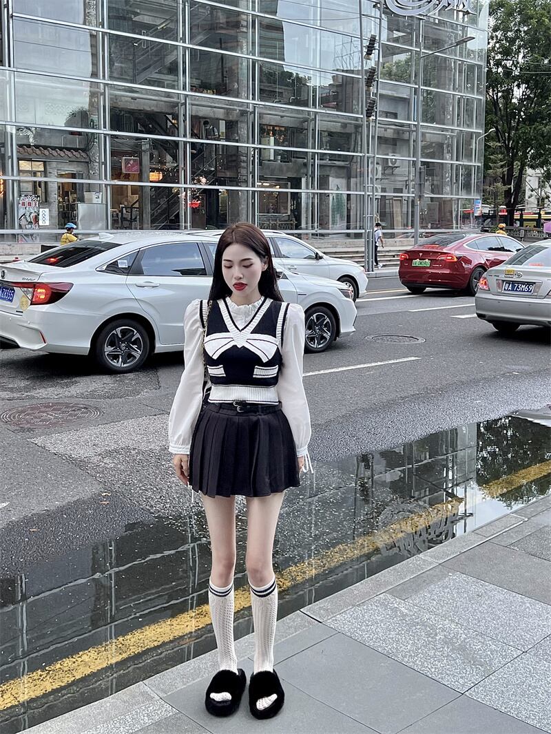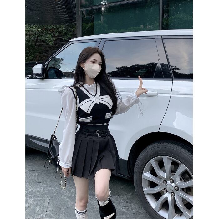 オータムニットシャツ プリーツスカート 大人ガーリー スウィート キュート カジュアル 秋物 ピュア 10/5 秋冬 オータム ウインター ナチュラル mi4627159113488