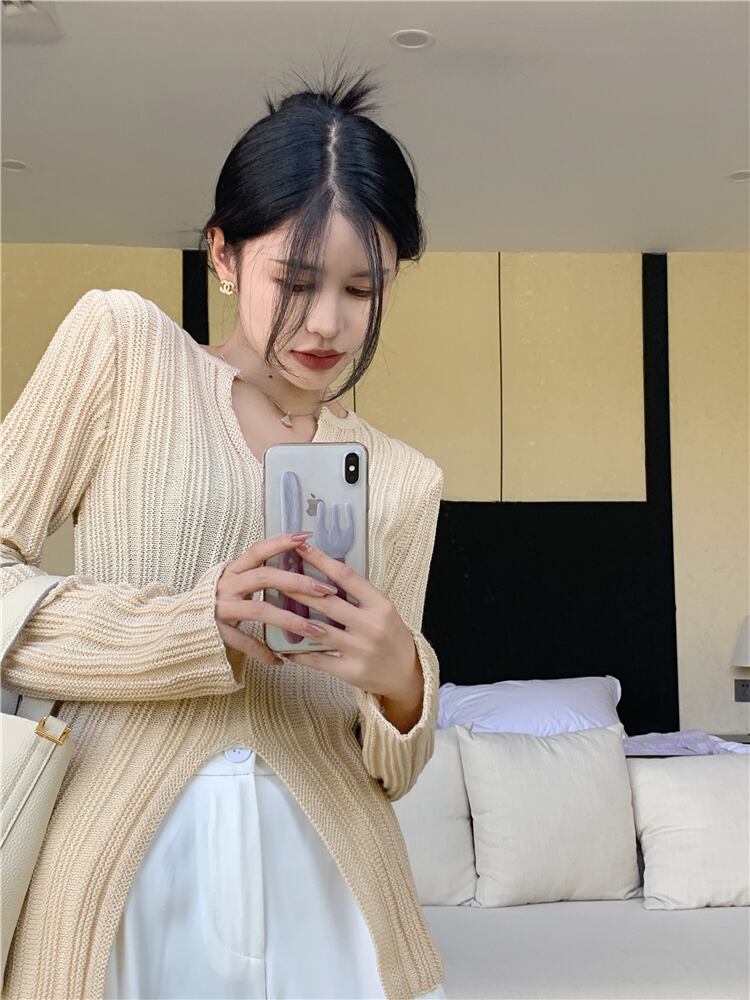 スタンダードスタイルVネックセーター オータム薄手スリムシャツ トップス ロング レトロ 秋物 10/5 秋冬 オータム ウインター ナチュラル mi4682793730099