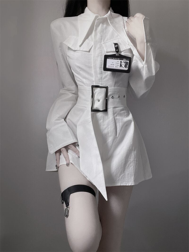 スリムホワイトシャツ ドレス オータムバックレスAラインスカート 秋物 10/5 秋冬 オータム ウインター ナチュラル mi4679114560233