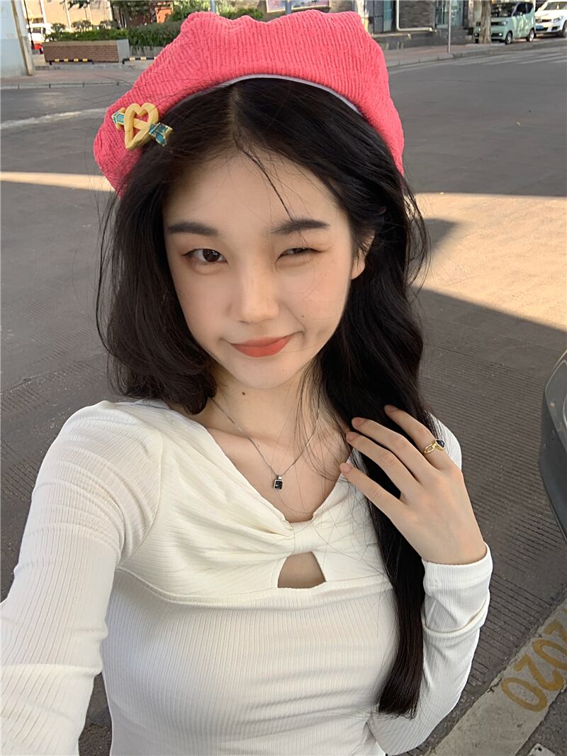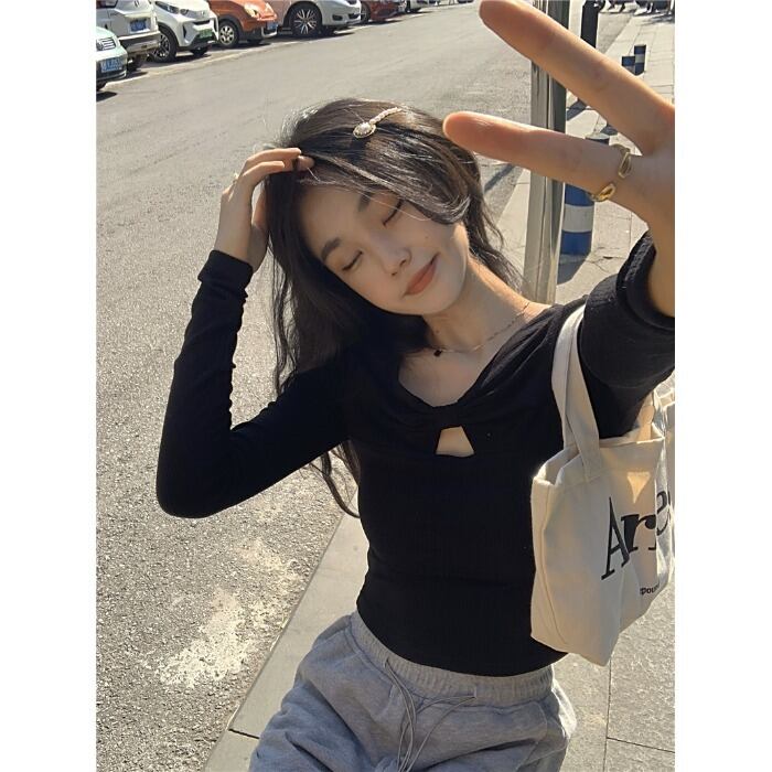 ホワイトリボンTシャツ オータムスリムトップス ロング 秋物 10/5 秋冬 オータム ウインター ナチュラル mi463689599269