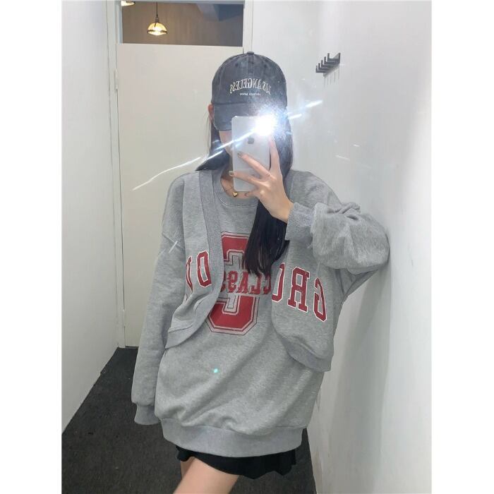 プリントプルオーバー セーター オータムルーズトップス ストリート 秋物 10/5 秋冬 オータム ウインター ナチュラル mi4656387551379