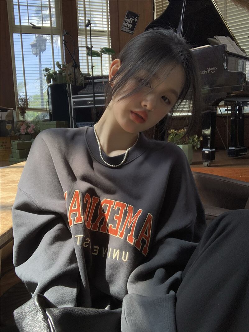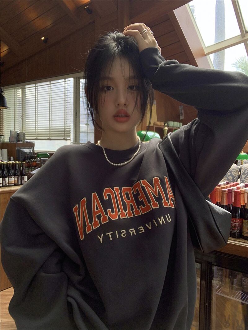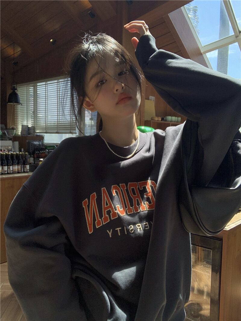 スタンダードプリントカジュアルセーター オータムルーズ薄手プルオーバー トップス レトロ 秋物 10/5 秋冬 オータム ウインター ナチュラル mi4624414371354