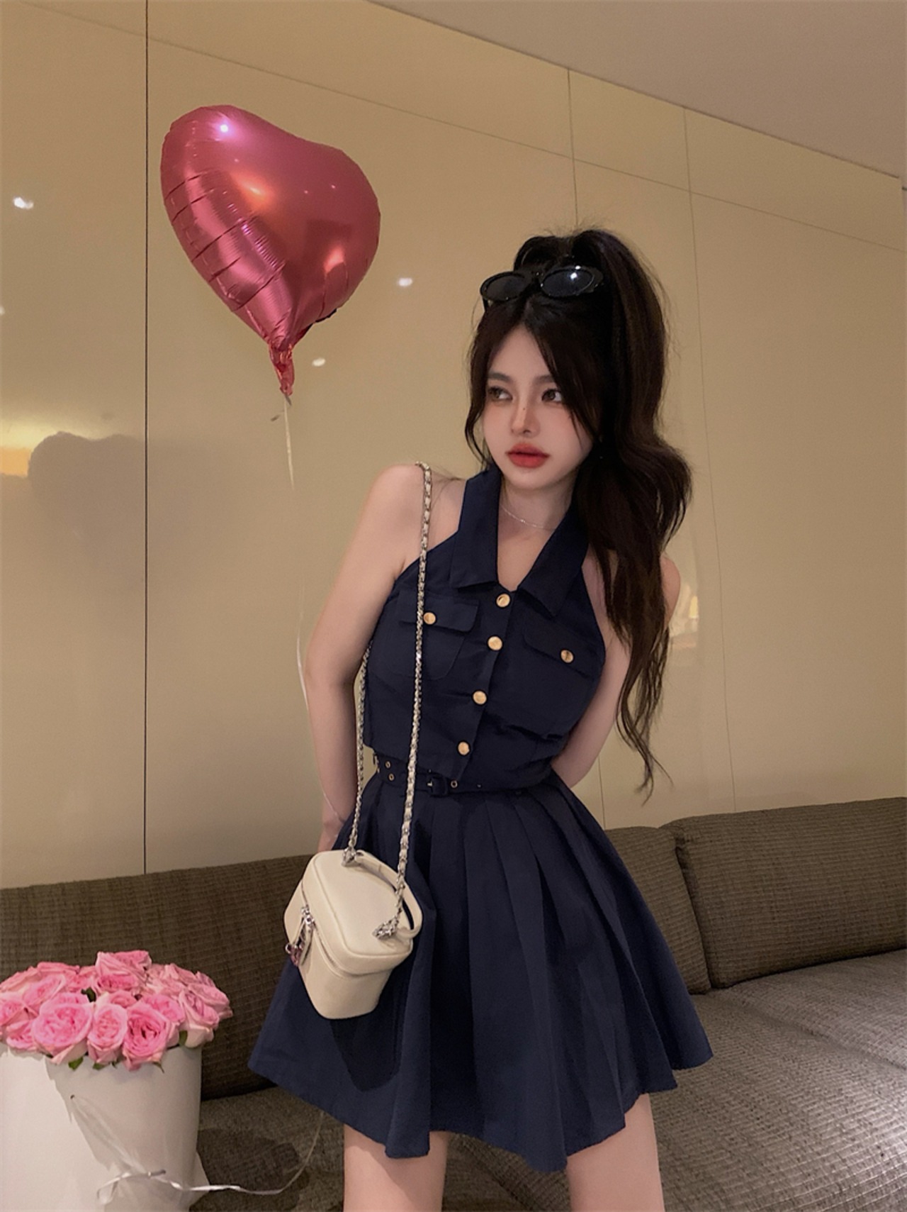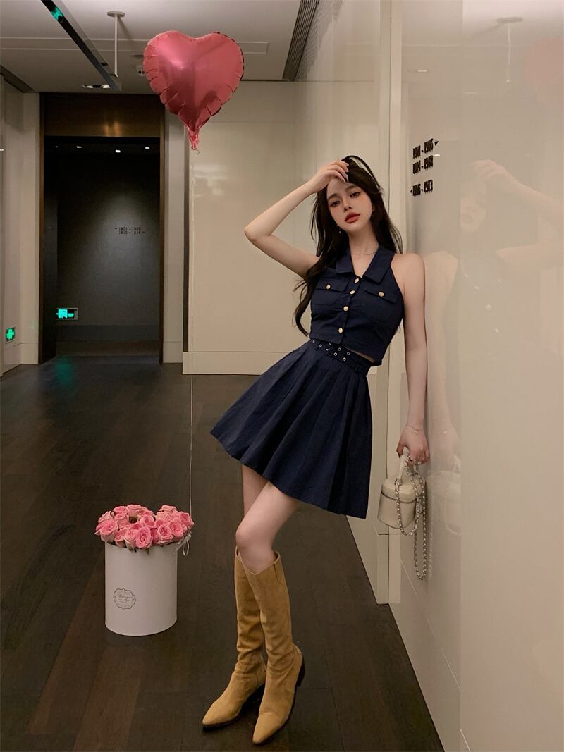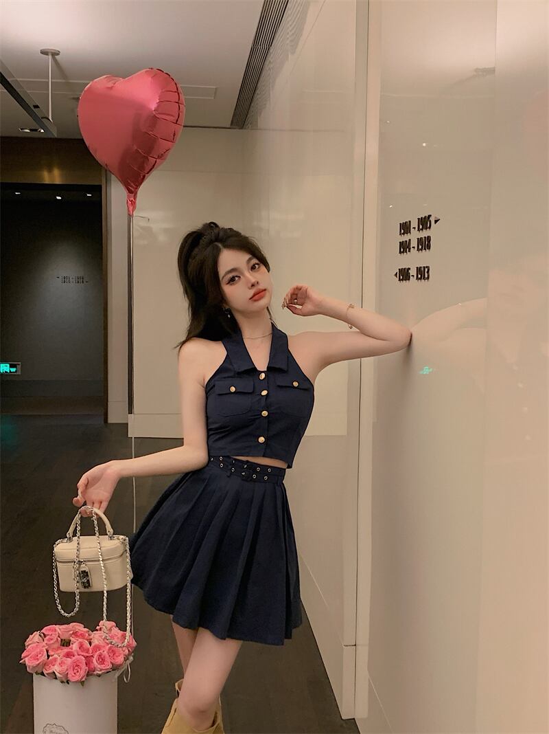 サマースタイルボタンノースリーブプリーツスカート セット 夏物 10/5 秋冬 オータム ウインター ナチュラル mi4679820264619