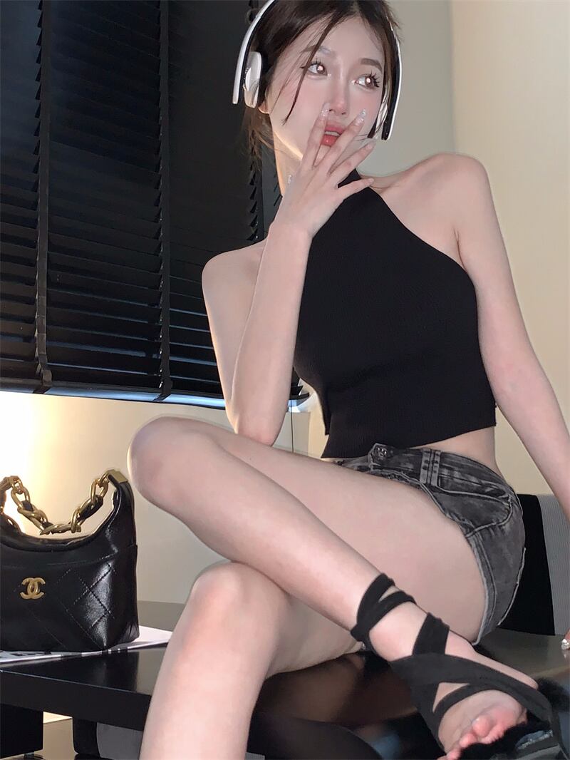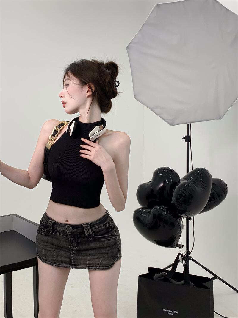 ブラックホルターサマーノースリーブニットトップス 夏物 10/5 秋冬 オータム ウインター ナチュラル mi4642274565903
