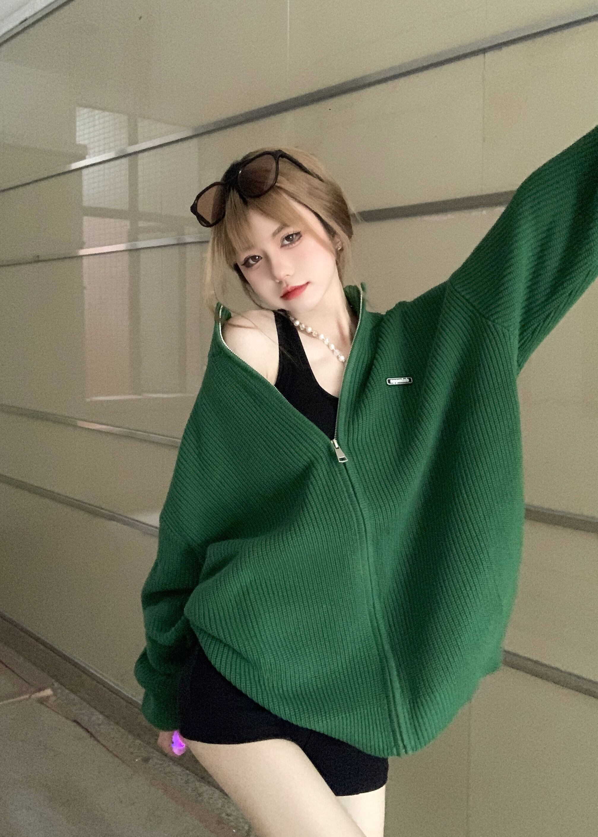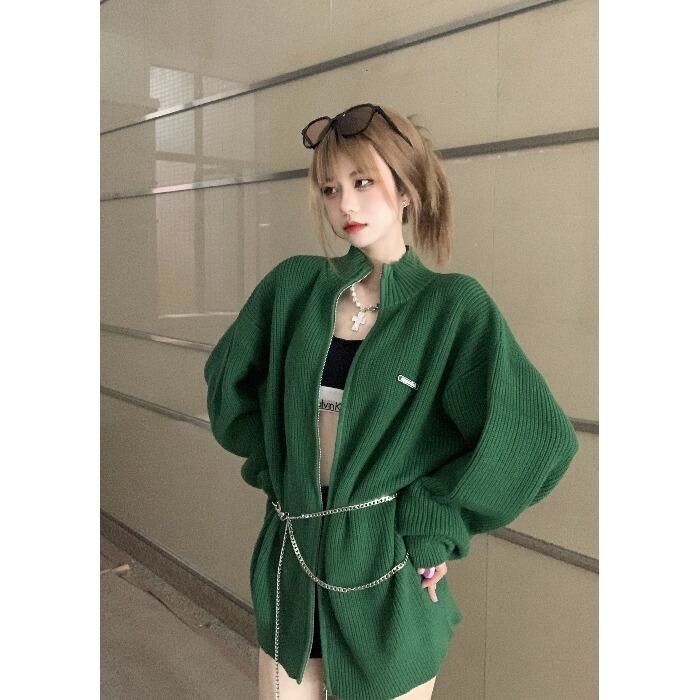 スタンダードグリーンセーター コート オータムルーズトップス レトロ ストリート 秋物 10/5 秋冬 オータム ウインター ナチュラル mi4647196375340