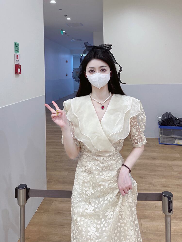 ドレス サマーレースFlowerデザイン ウェストスカート 夏物 フラワーデザイン 10/5 秋冬 オータム ウインター ナチュラル mi4689547955736