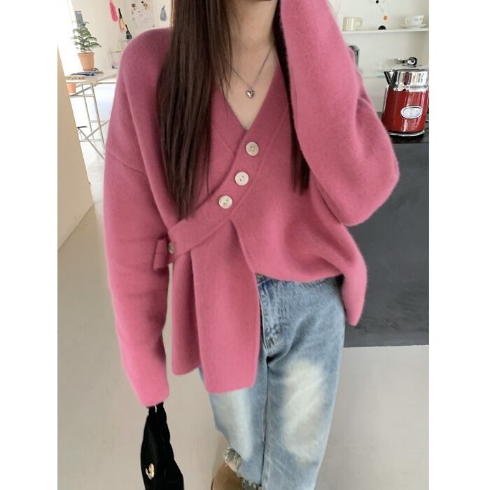 ブルーVネックセーター コート オータムルーズトップス 秋物 10/5 秋冬 オータム ウインター ナチュラル mi4639616498097