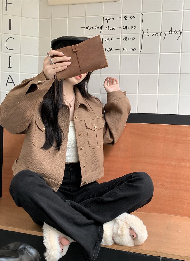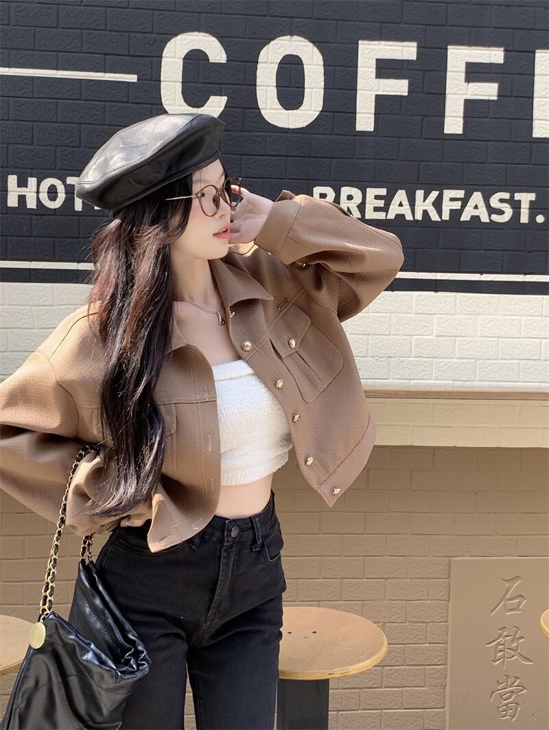 スタンダードカーキジャケット オータムトップス ロング レトロ 秋物 10/5 秋冬 オータム ウインター ナチュラル mi462333226609