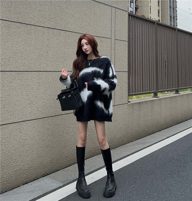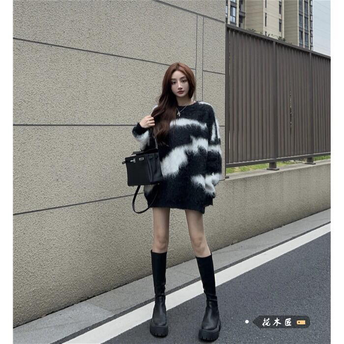 スタイルレオパードプリント柄プルオーバー オータムルーズニットトップス 秋物 10/5 秋冬 オータム ウインター ナチュラル mi4673219259123
