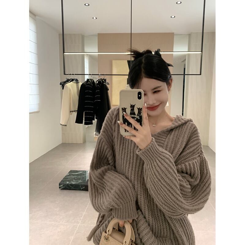 ルーズフードセーター 長袖スリーブニットトップス ロング 10/5 秋冬 オータム ウインター ナチュラル mi4620149928979