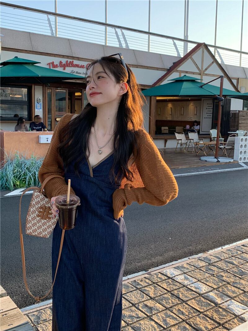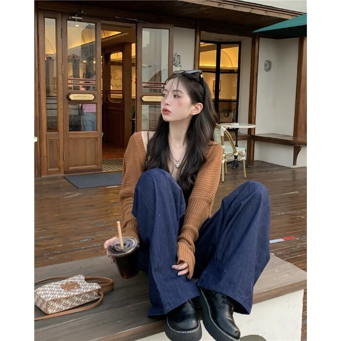 スタンダードカラーショートカーディガンオータム薄手スリムニットセーター トップス ロング レトロ 秋物 10/5 秋冬 オータム ウインター ナチュラル mi4616654280811