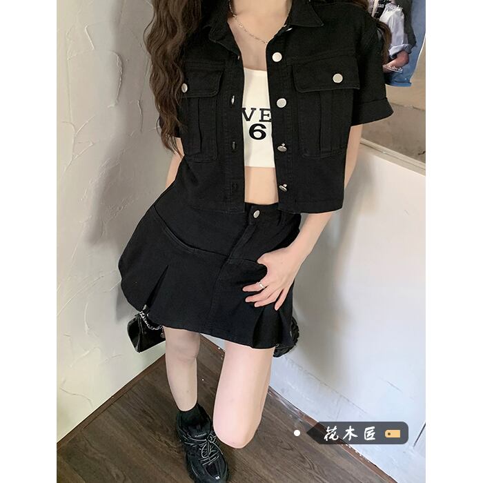 ブラックスカート サマーショートジャケット プリーツ 大人ガーリー スウィート キュート カジュアル 夏物 10/5 秋冬 オータム ウインター ナチュラル mi4627202116219