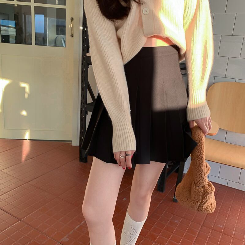ソリッド カラースカート オータムハイウェストウェスト薄手ルーズプリーツ 秋物 ソリッドカラー 10/5 秋冬 オータム ウインター ナチュラル mi461675848614