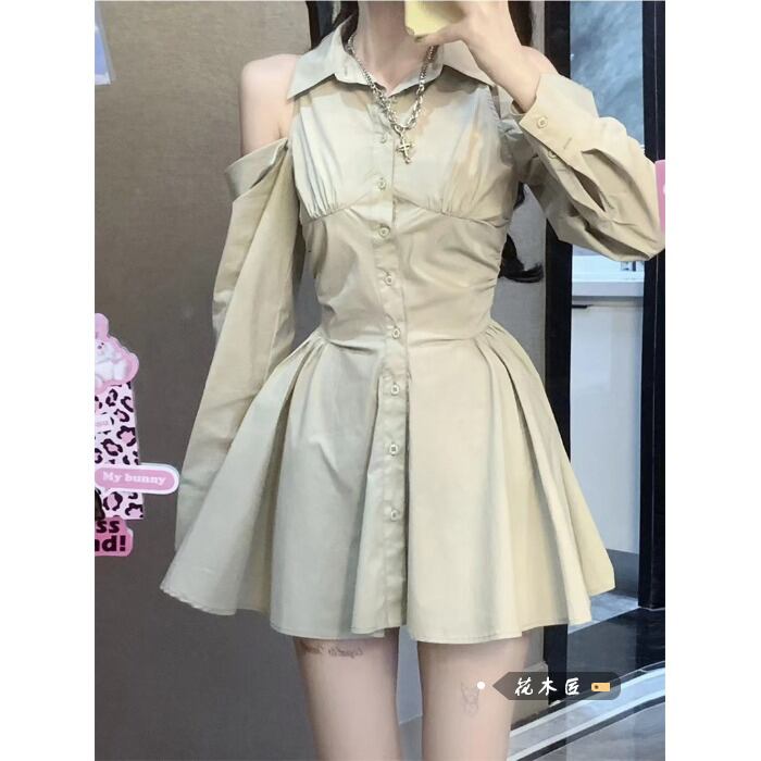 シャツ ドレス オータムウェスト薄手Aラインスカート 秋物 ピュア 10/5 秋冬 オータム ウインター ナチュラル mi4686431959256