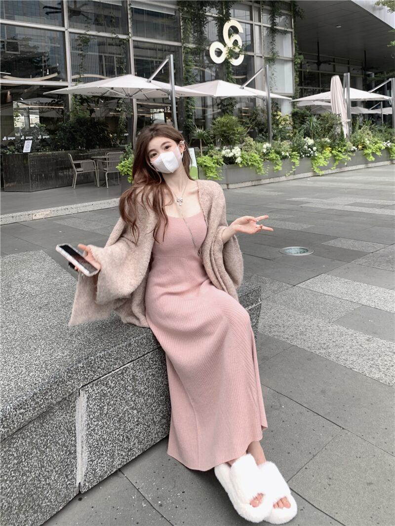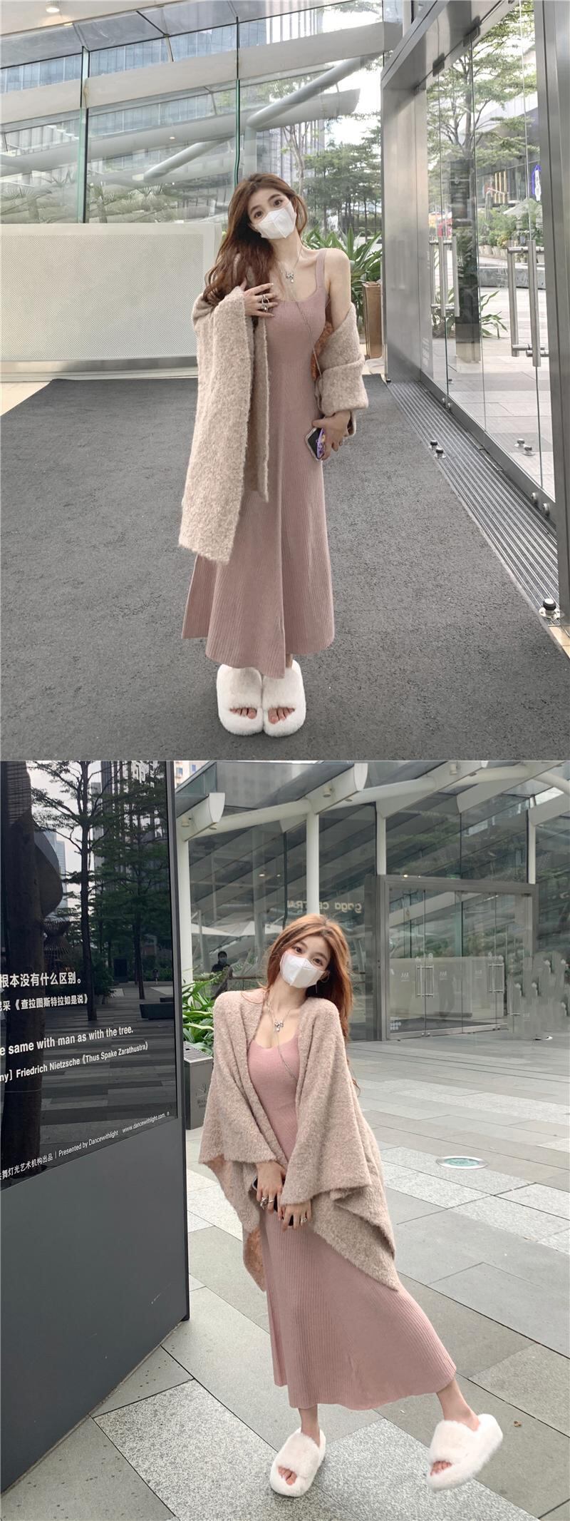 色:オートミールケープ,ピンクのタンクトップ
