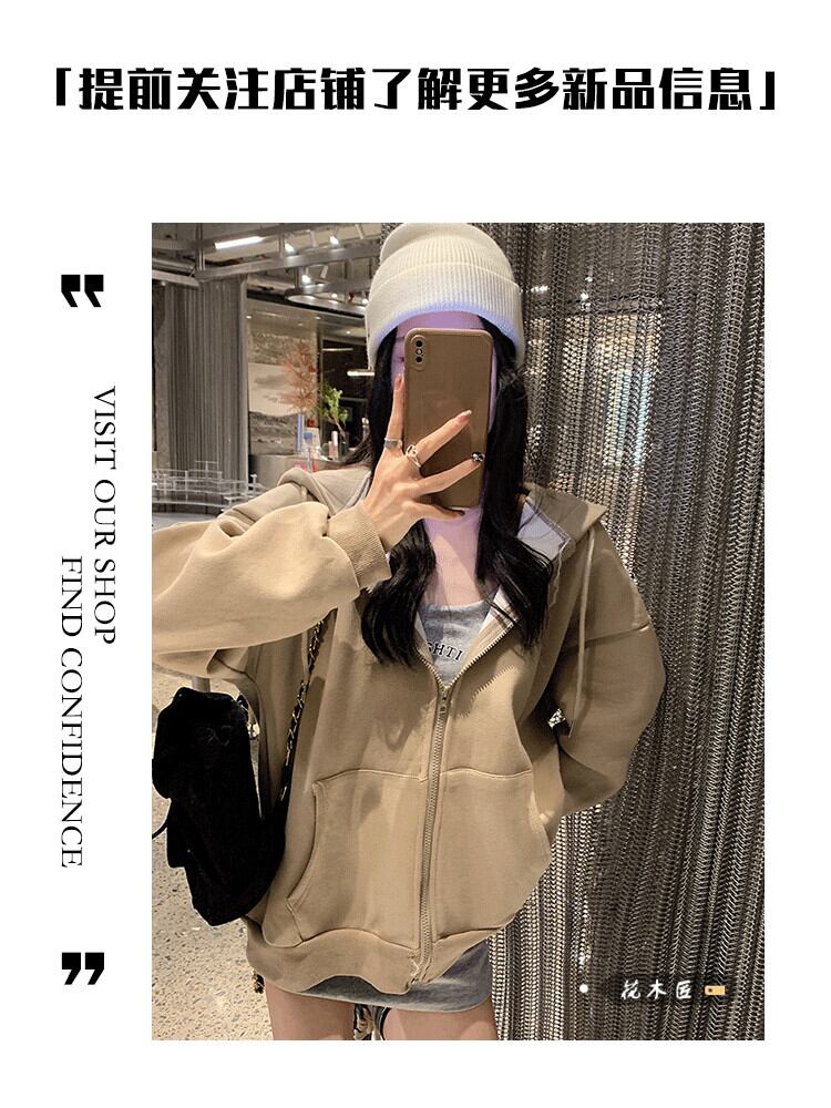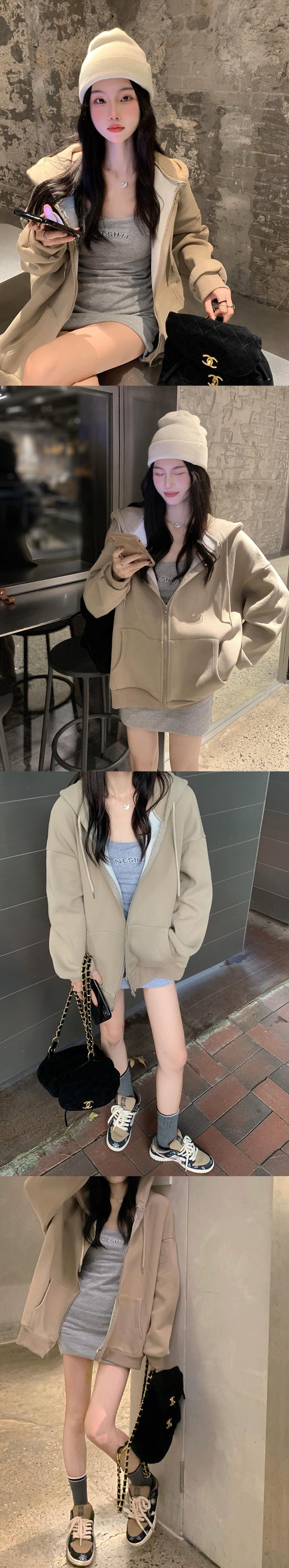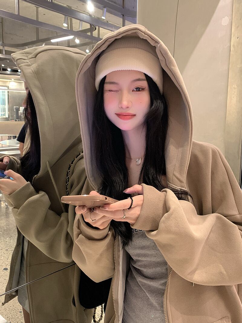 カーキフードセーター オータムルーズコート ジッパートップス ロング 秋物 10/5 秋冬 オータム ウインター ナチュラル mi4641749460167