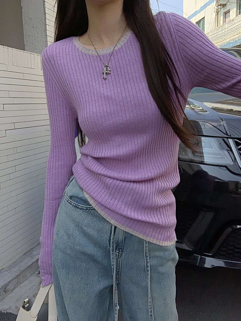 カラーニットセーター オータムシャツ スリムトップス ロング ストリート 秋物 10/5 秋冬 オータム ウインター ナチュラル mi4647592797316