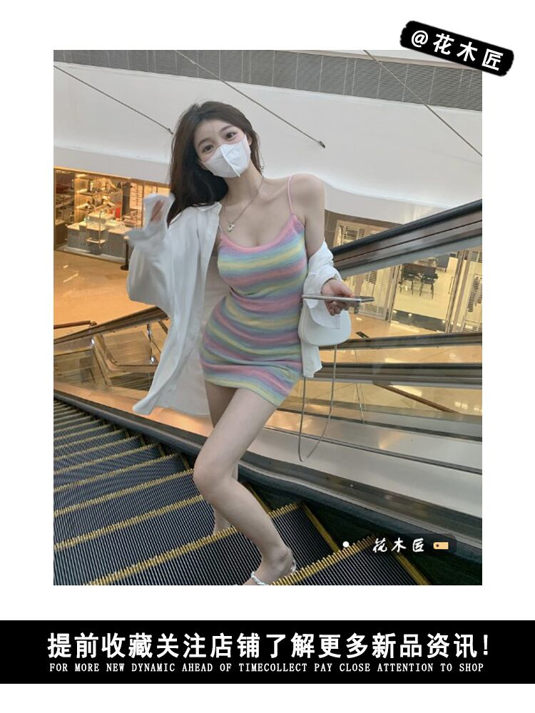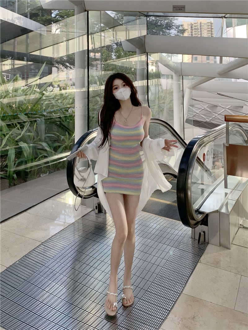 ストライプニットドレス サマーウェスト薄手スカート 夏物 10/5 秋冬 オータム ウインター ナチュラル mi4672943070864