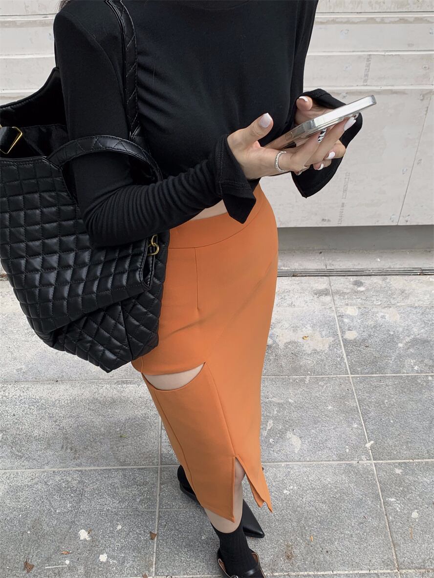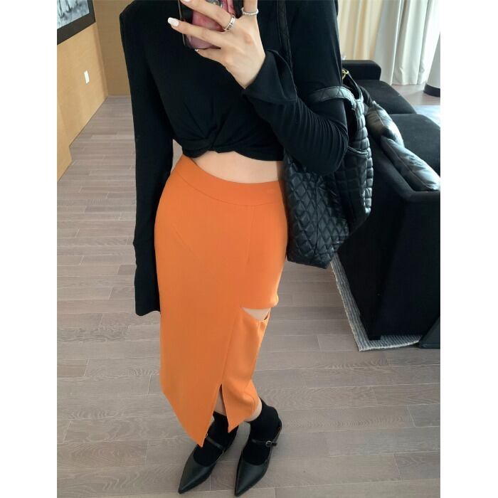 ハイウェストスカート オータムスタイルスリット 秋物 10/5 秋冬 オータム ウインター ナチュラル mi4610259939113