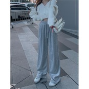 カジュアルソリッド カラーギャザーパンツ オータムハイウェスト薄手ルーズ 秋物 ソリッドカラー 10/5 秋冬 オータム ウインター ナチュラル mi4686088133985