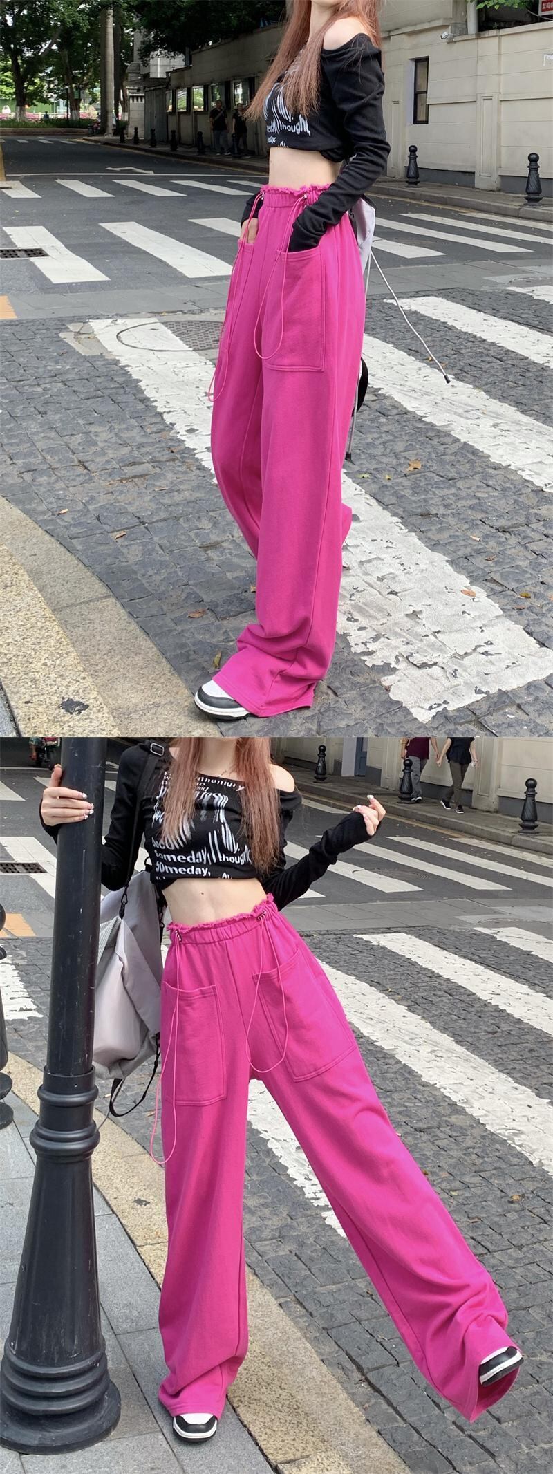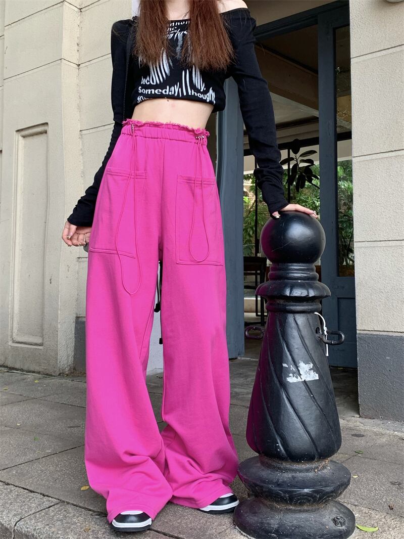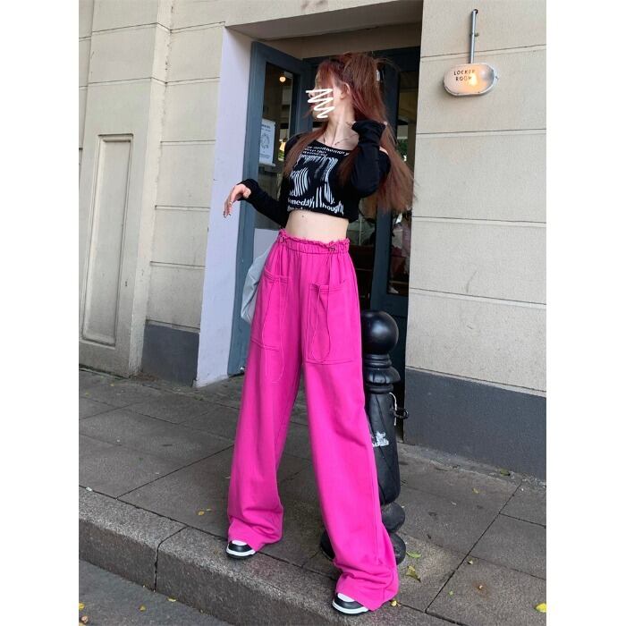 ギャザーカジュアルパンツ オータムハイウェストウェスト薄手ルーズワイドレッグ ストリート 秋物 ワイドパンツ 10/5 秋冬 オータム ウインター ナチュラル mi4617268942307