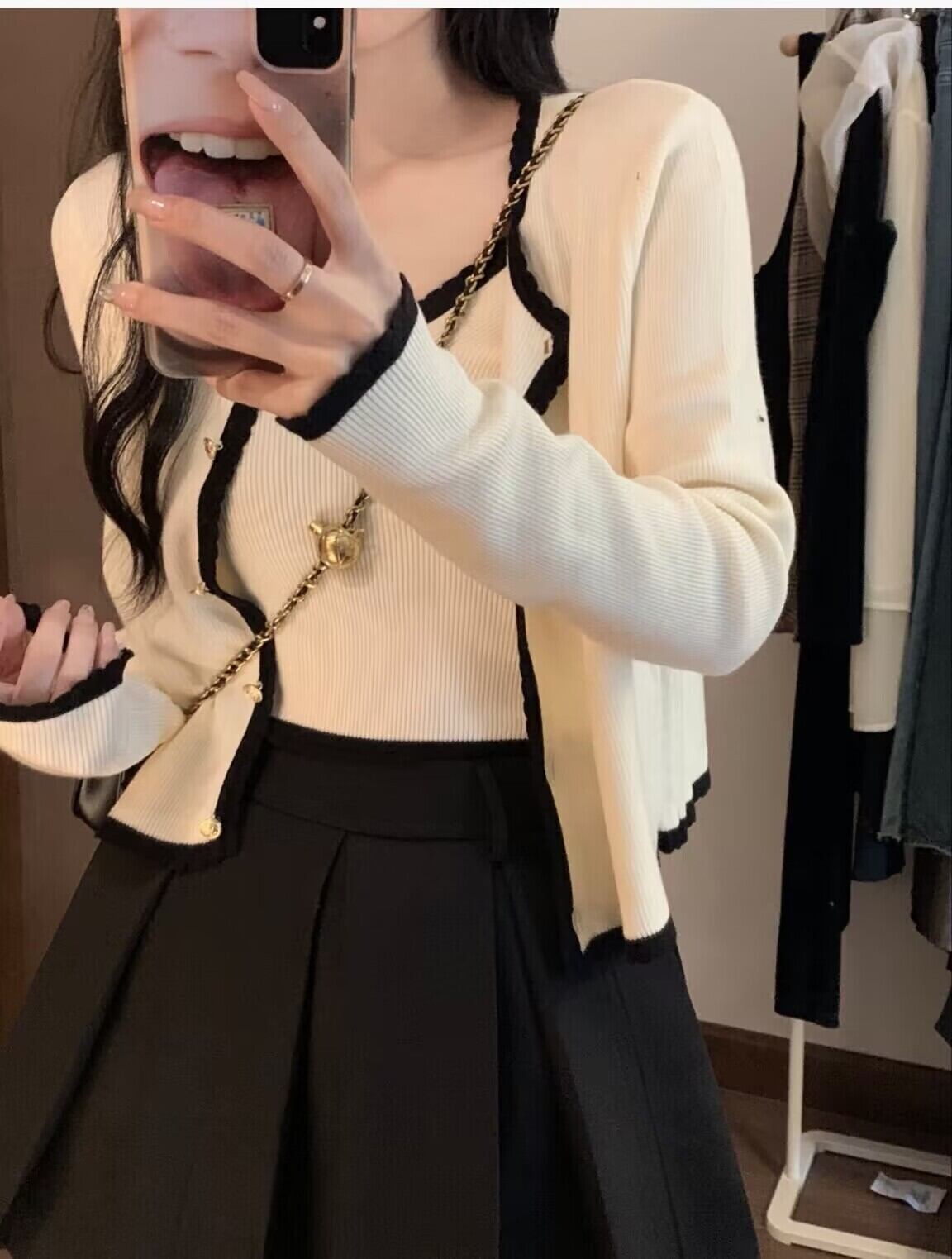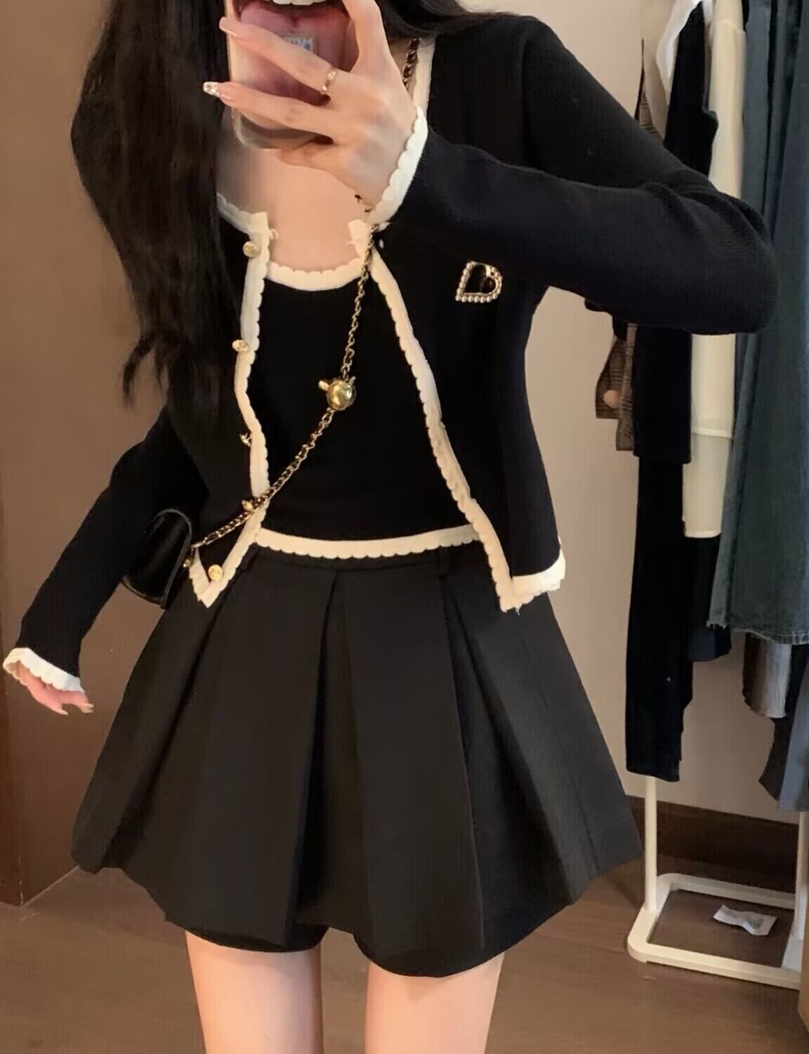 色:黒のベスト+カーディガン,アプリコットベスト+カーディガン