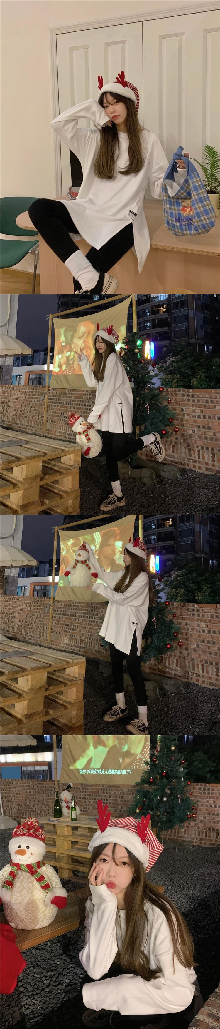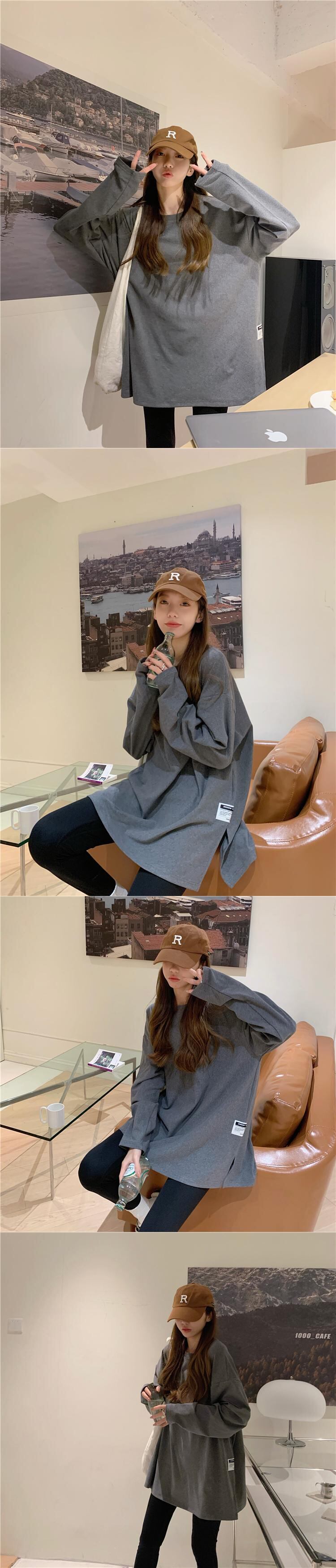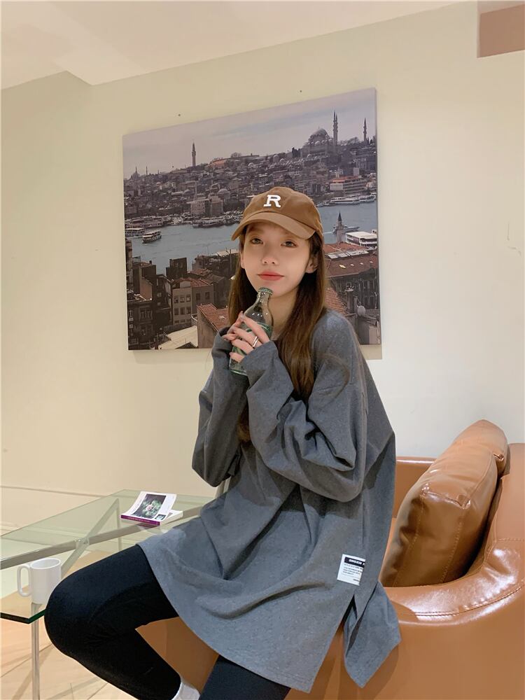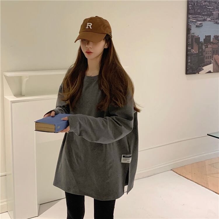 ルーズスリットTシャツ オータムカジュアルラウンドネックトップス ロング 秋物 Oネック 10/5 秋冬 オータム ウインター ナチュラル mi461262952120