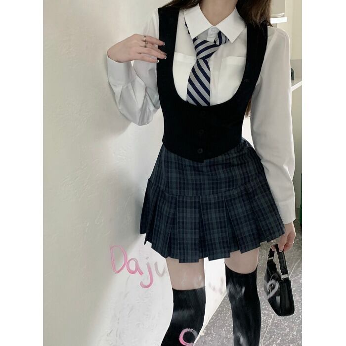 色:ベストワンピース,シャツ+ネクタイ,シングルプリーツスカート