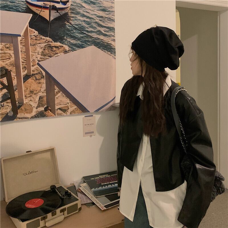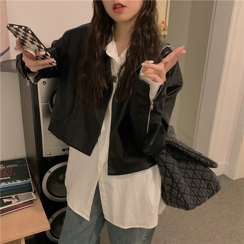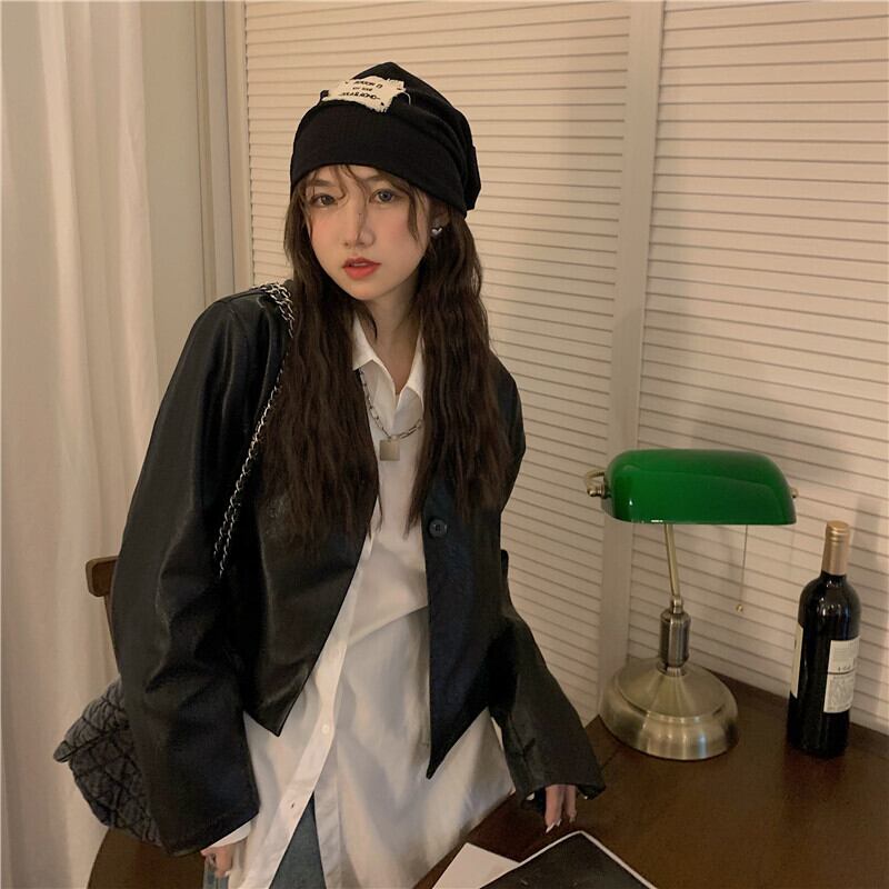 スタンダードブラックジャケット レザーオータムルーズショートトップス レトロ 秋物 10/5 秋冬 オータム ウインター ナチュラル mi4634804687535