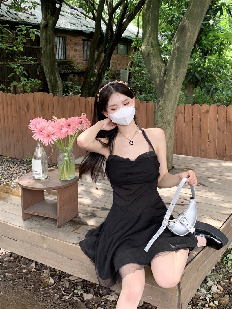 メッシュブラックホルタードレス サマーバックレスウェストスカート 夏物 ステッチ 10/5 秋冬 オータム ウインター ナチュラル mi4669056219995