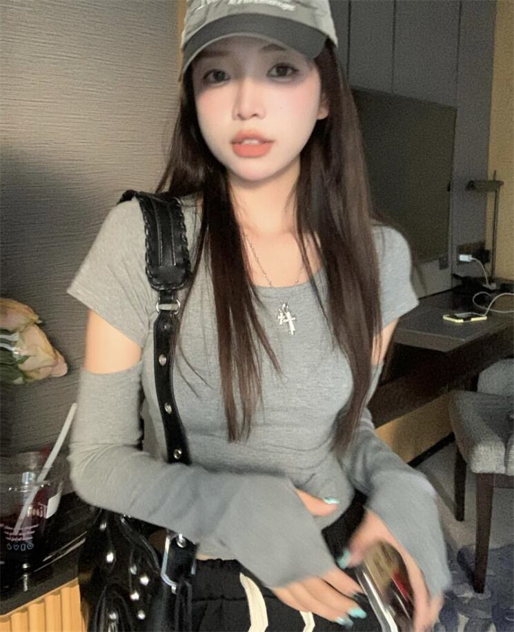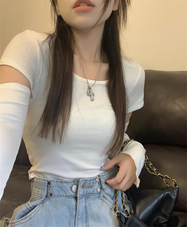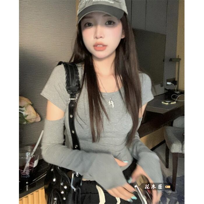 Tシャツ オータムスリムショートトップス ロング 秋物 10/5 秋冬 オータム ウインター ナチュラル mi4652841357514