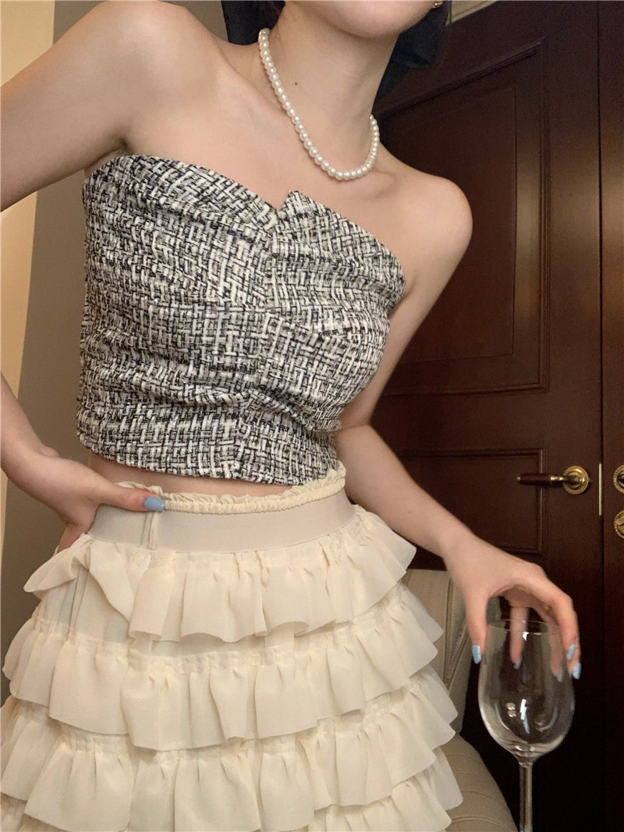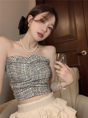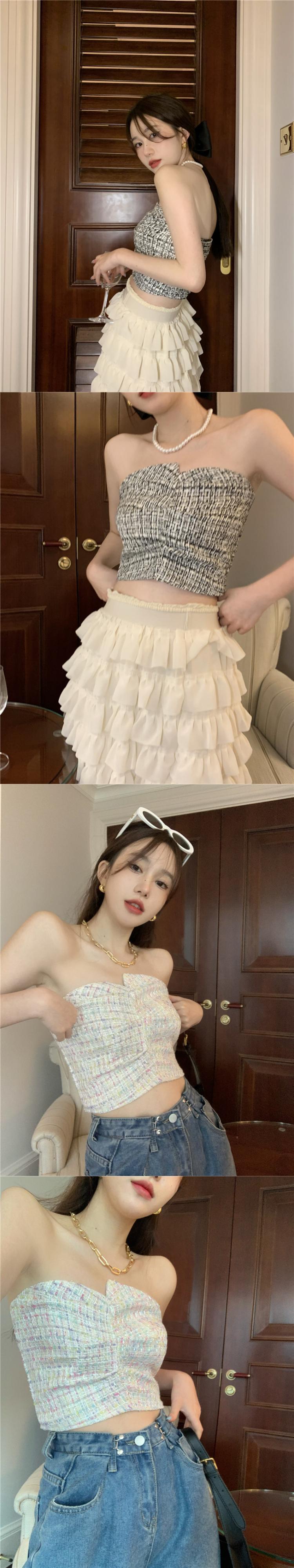 ツィードトップス ストラップレスサマープリーツスリムショート 夏物 10/5 秋冬 オータム ウインター ナチュラル mi4636683634204