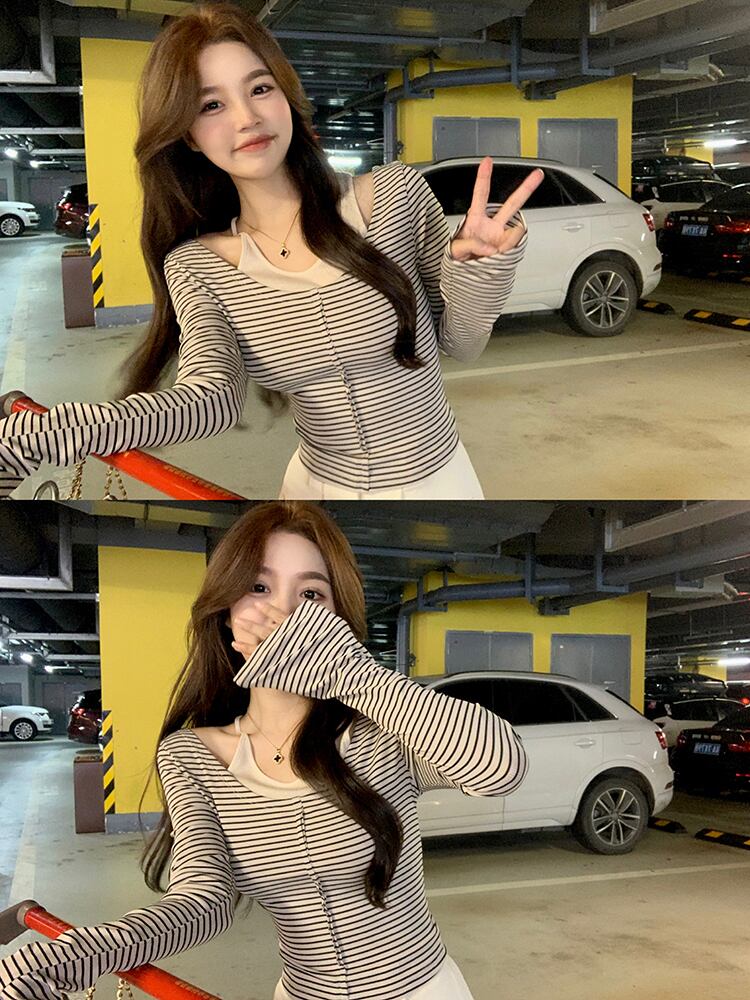 ストライプTシャツ オータムスリムトップス ロング 秋物 10/5 秋冬 オータム ウインター ナチュラル mi4670980027947