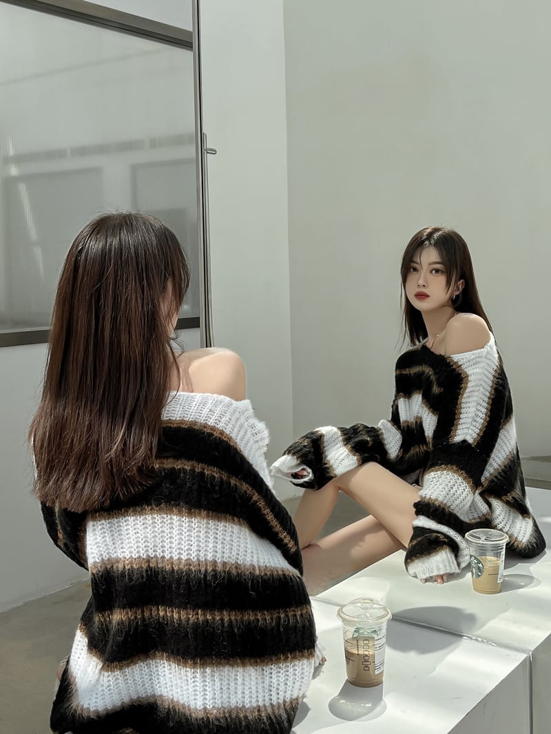 カラーストライプセーター ルーズ薄手プルオーバー 10/5 秋冬 オータム ウインター ナチュラル mi4653321134633