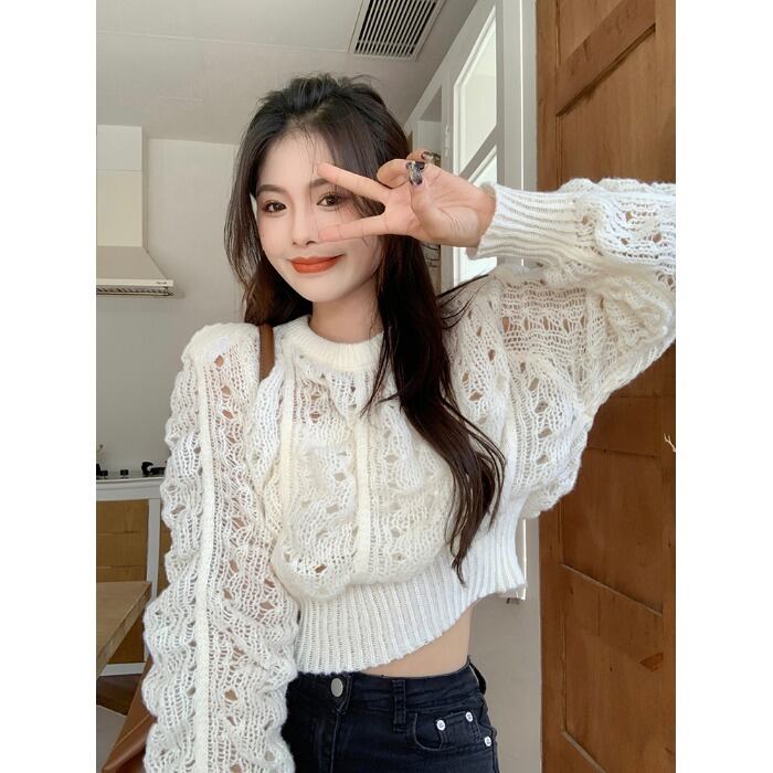 スタイルホワイトニットセーター オータムショートトップス 秋物 10/5 秋冬 オータム ウインター ナチュラル mi4634851459067