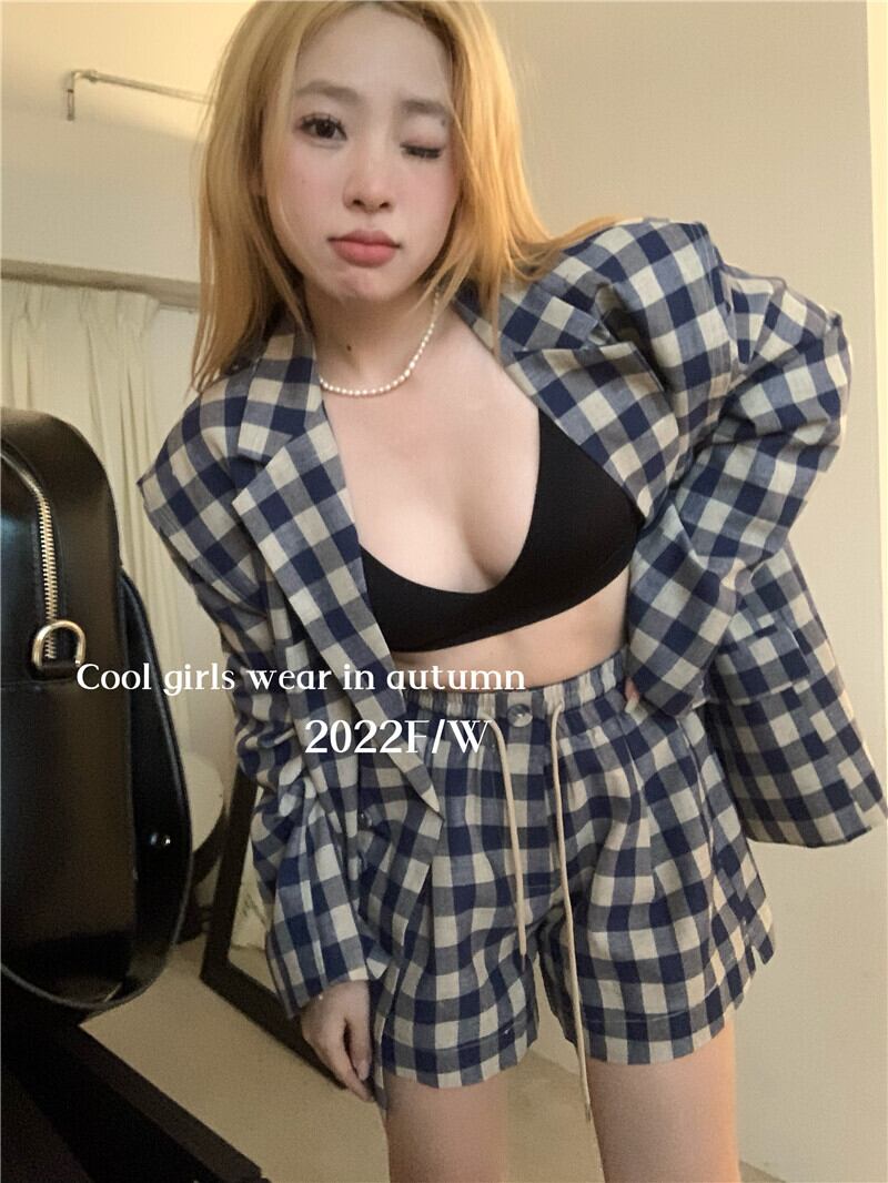 格子柄オータムジャケット ハイウェストウェストショーツ ストリート 秋物 ブルマー 10/5 秋冬 オータム ウインター ナチュラル mi4683925594922