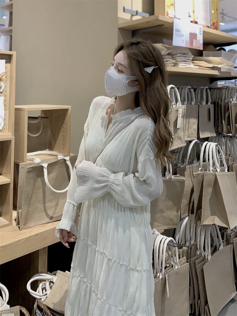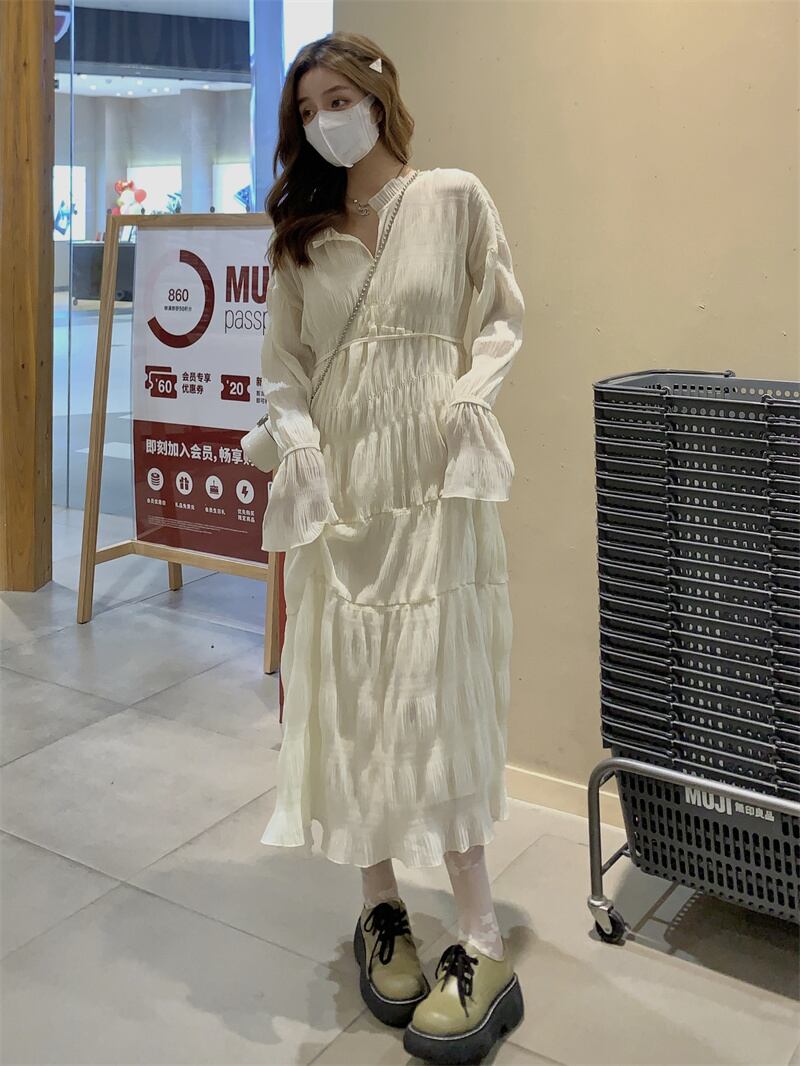 プリーツオータムドレス ウェスト薄手Aラインスカート ロング 秋物 10/5 秋冬 オータム ウインター ナチュラル mi4614028946917