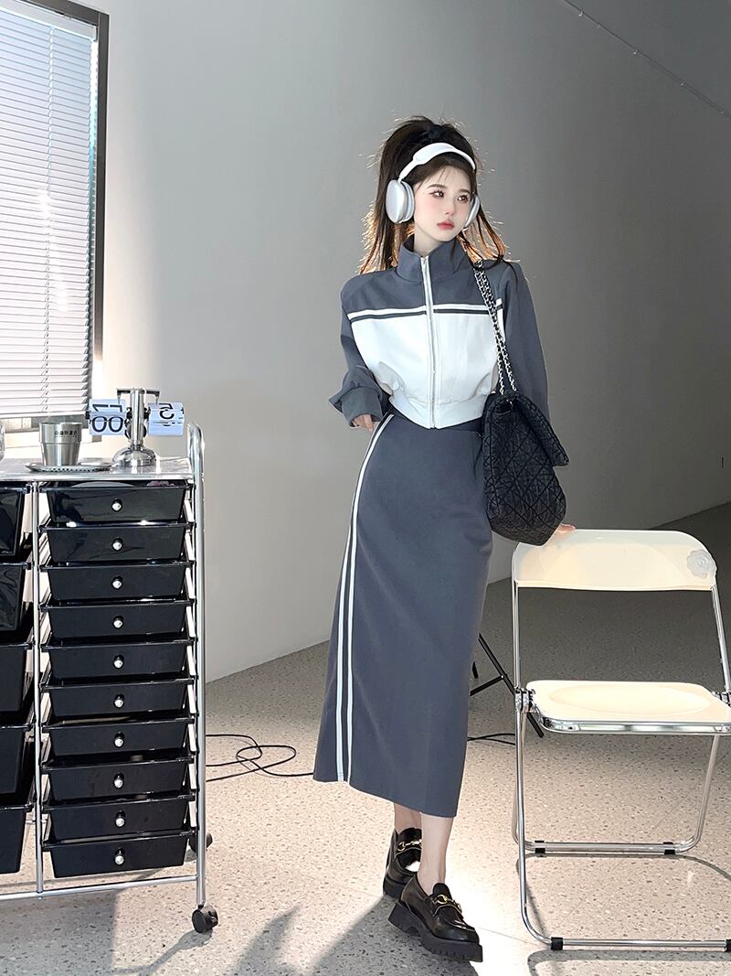 色:グレーコートシングルピース,グレーハーフスカートワンピース