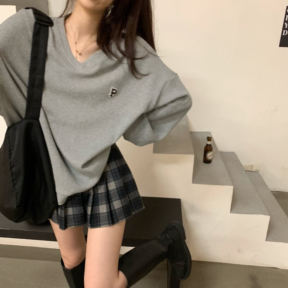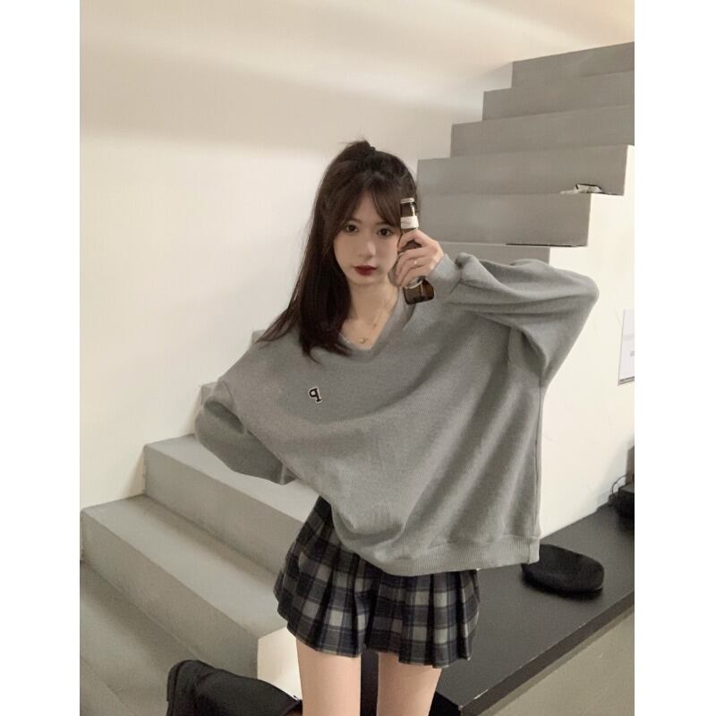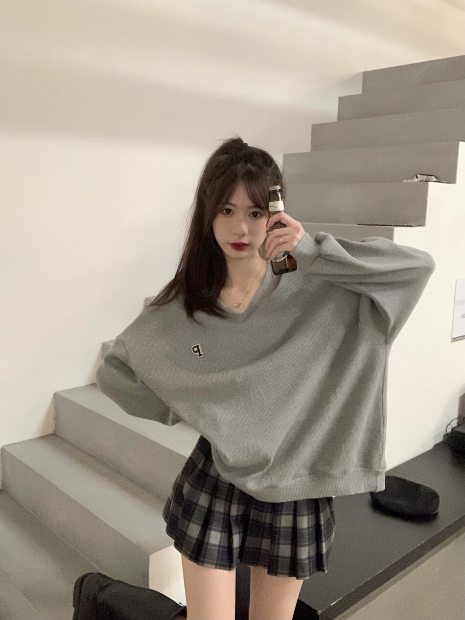 ルーズVネックプルオーバー セーター オータムグレートップス ロング 秋物 10/5 秋冬 オータム ウインター ナチュラル mi4677418336346