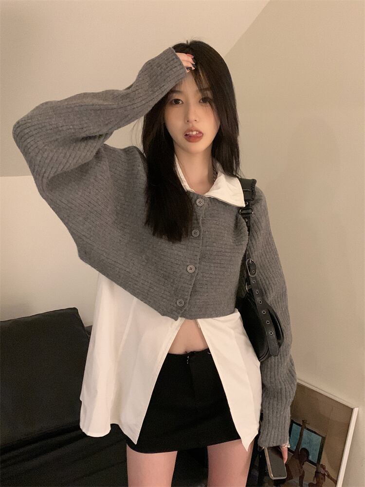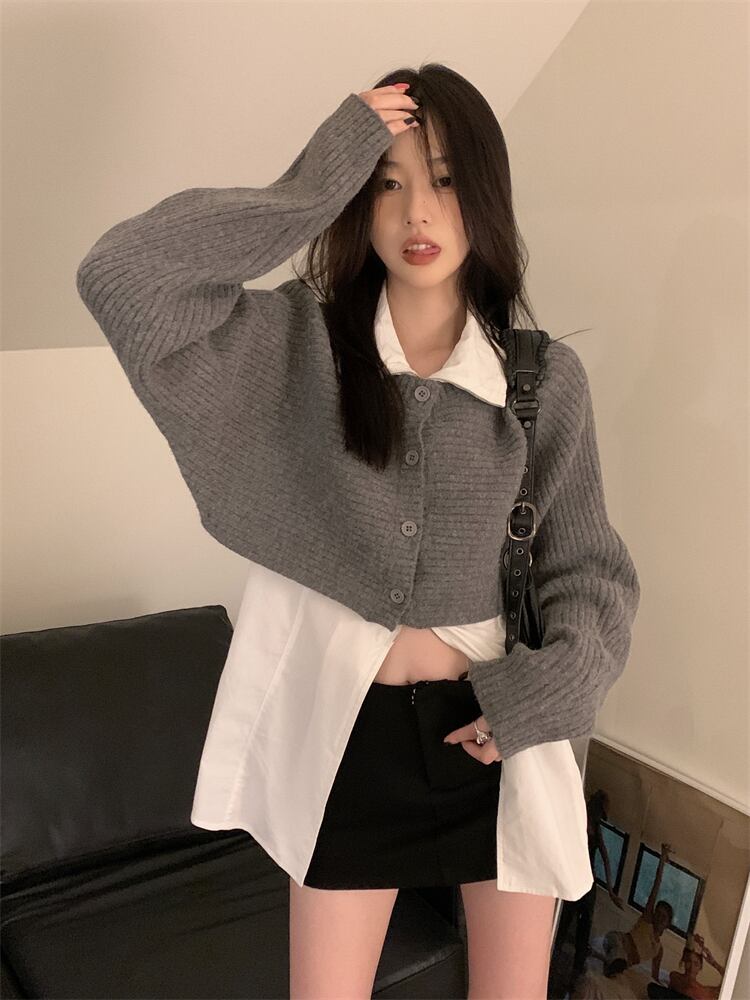 グレーショートセーター コート オータムルーズニットトップス 秋物 10/5 秋冬 オータム ウインター ナチュラル mi4632028405421