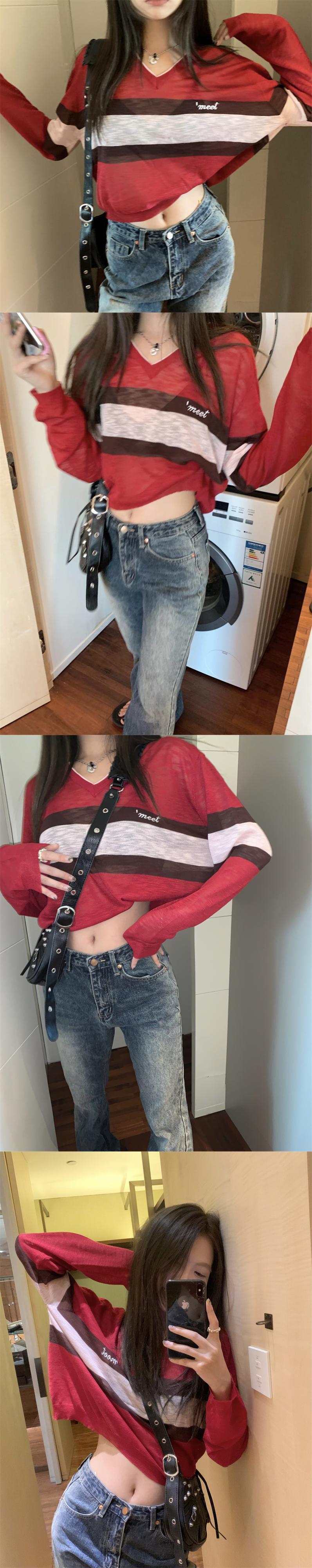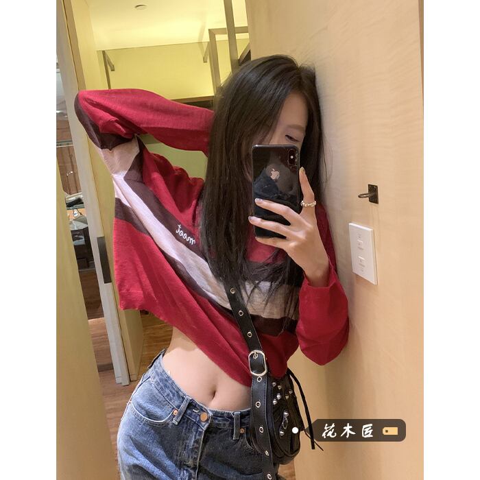 ストライプTシャツ オータムショートニットトップス ロング 秋物 10/5 秋冬 オータム ウインター ナチュラル mi4685920055695
