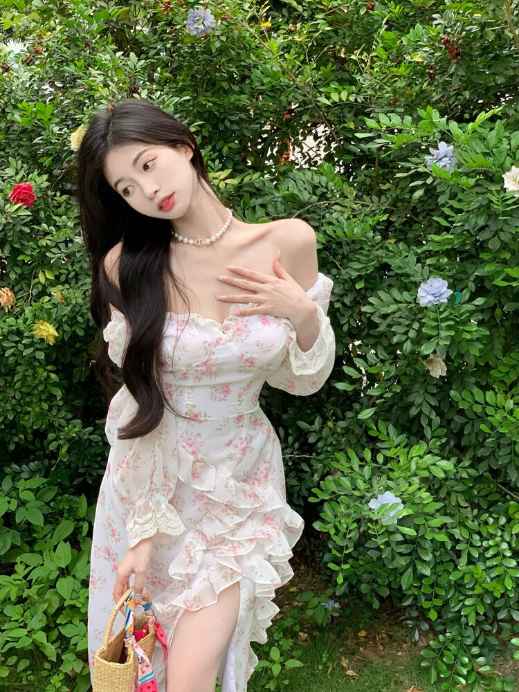 フローラルドレス サマーワンショルダーウェストスカート 大人ガーリー スウィート キュート カジュアル 夏物 花柄 10/5 秋冬 オータム ウインター ナチュラル mi4643759781569