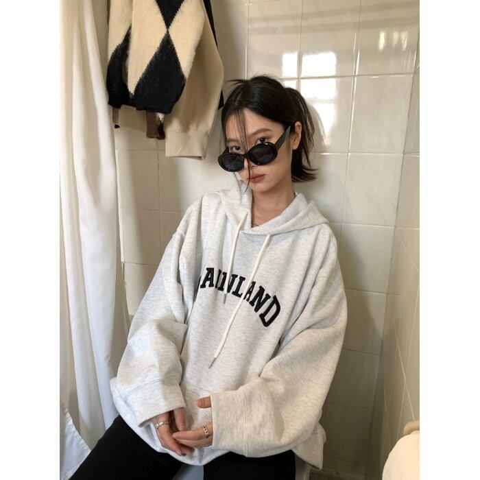 スタンダードフードセーター オータムルーズカジュアルトップス ロング レッド レトロ 刺繍 秋物 10/5 秋冬 オータム ウインター ナチュラル mi4667524575400