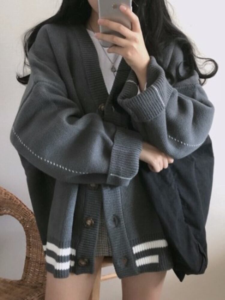 カジュアルVネックセーター コート オータムルーズ薄手ニットトップス 秋物 10/5 秋冬 オータム ウインター ナチュラル mi4647539071513