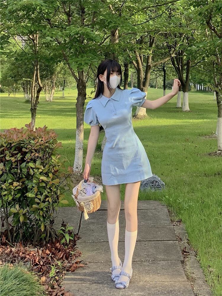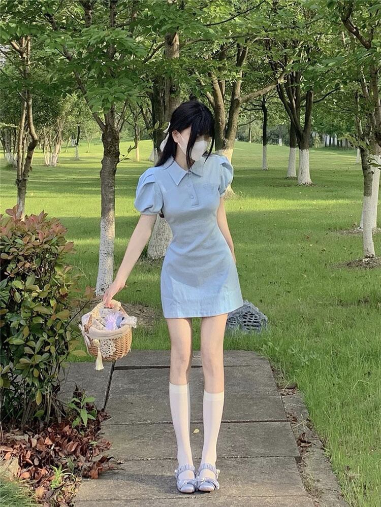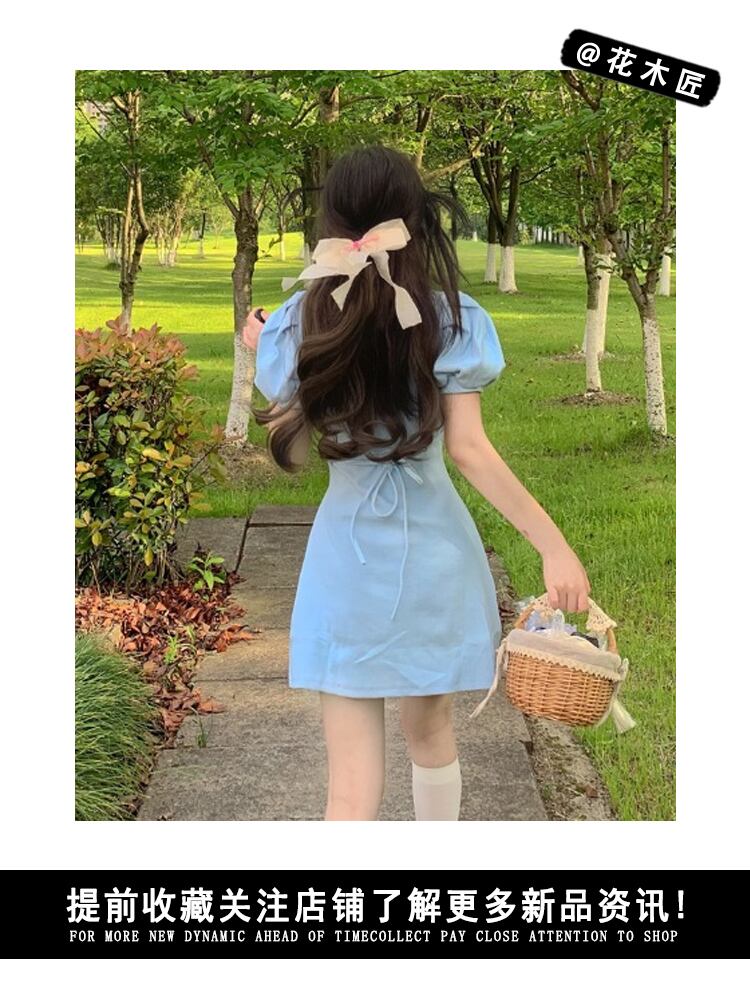 ブルースリーブドレス サマーバンドウェストAラインスカート 夏物 10/5 秋冬 オータム ウインター ナチュラル mi4664921279124