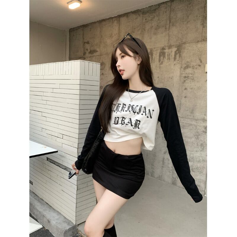 スタンダードプリントカラーTシャツ オータム薄手プルオーバー トップス ロング レトロ 秋物 10/5 秋冬 オータム ウインター ナチュラル mi465327976479
