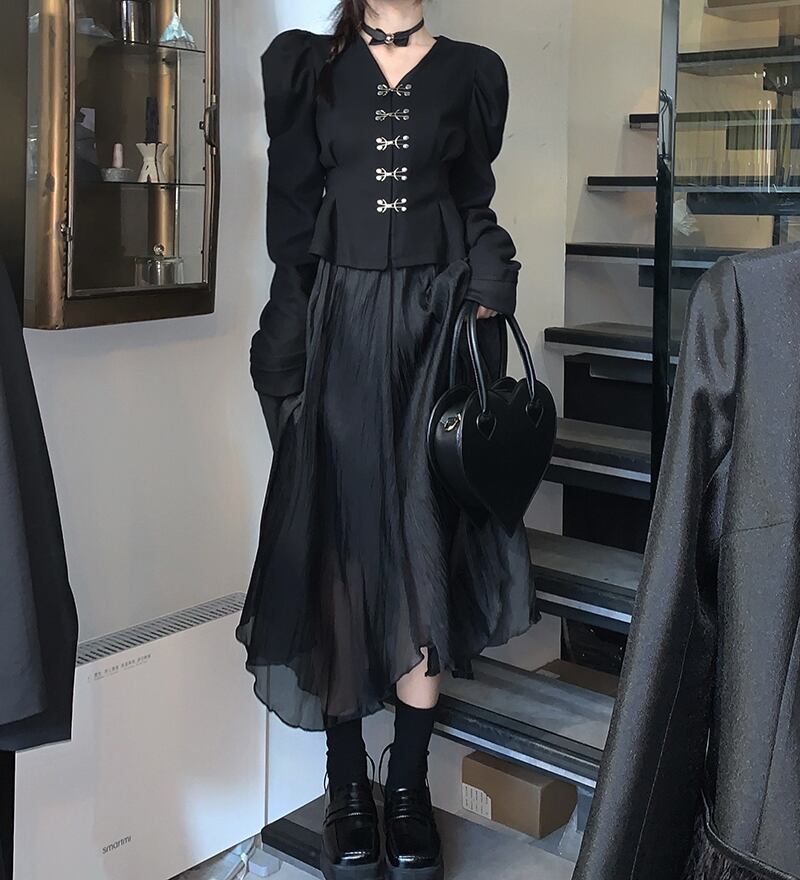 スタイルブラックオータムボタンスリーブニットトップス メッシュスカート セット 秋物 10/5 秋冬 オータム ウインター ナチュラル mi4658845864782